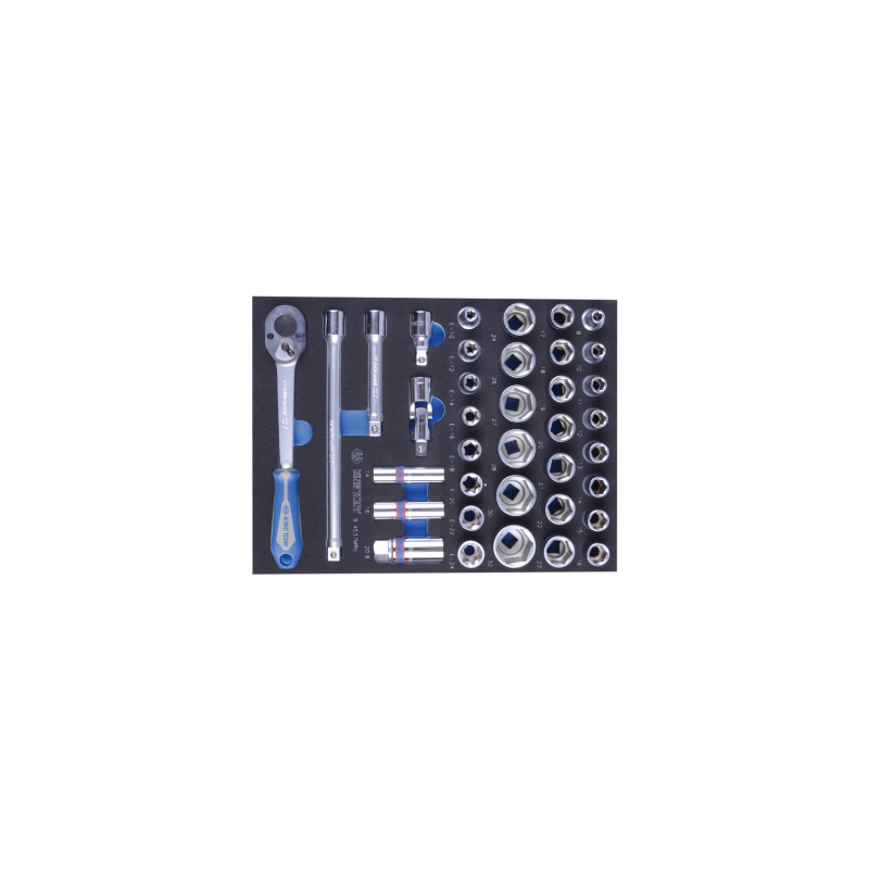 Tamanhos de soquete padrão métrico: 8 – 10 – 11 – 12 – 13 – 14 – 15 –16 – 17 – 18 – 19 – 20 – 21 – 22 – 23 – 24 – 26 – 27 – 28 – 30– 32 (4335M)Tamanhos de soquete estrela fêmea: E10 – E12 – E14 – E16 – E18 – E20 – E22 – E24 (4375M)Catraca reversível (4779-10G)Deslocamento multifuncional Barra de extensão 55 mm (4293-02)Barras de extensão 125 m e 250 mm (4251-05 e 4251-10)Borracha do soquete da vela de ignição 16 mm e 20,8 mm (463516M e 463521M)Borracha do soquete da vela de ignição 14 mm (463014RC)Junta universal (4791).