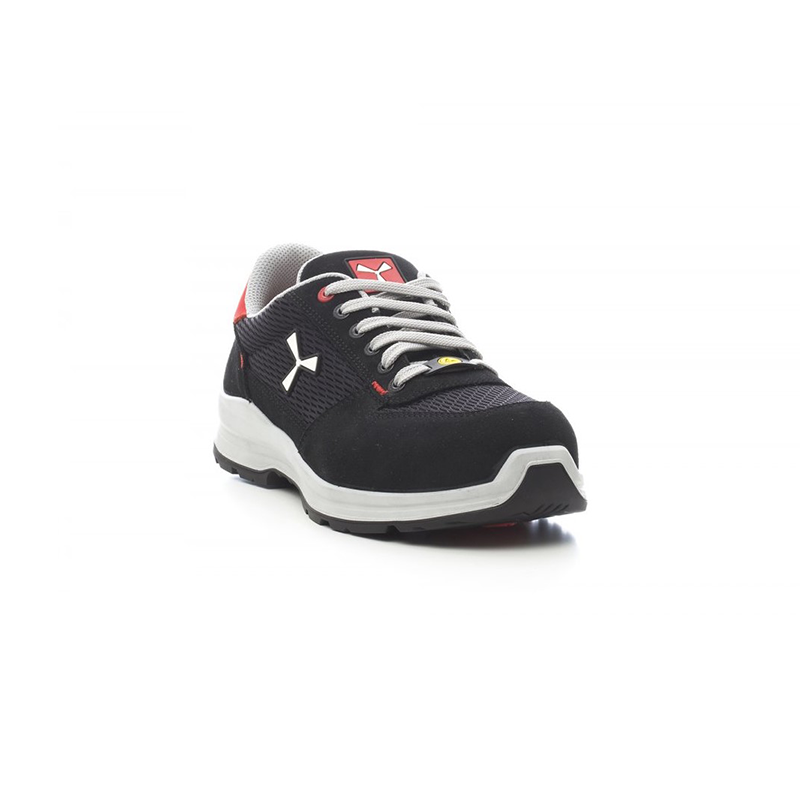 GET TEXFORCE LOW S1P SRC ESD é uma sapatilha de segurança antiestática cano baixo, com gáspea em croute repelente à agua com aplicações de tecido técnico respirável, forro interno (para toda a superfície interna) respirável e resistente à abrasão, 6+6 ilhoses metal-free, aplicação refletora na proteção do calcanhar, biqueira alumínio fundido sob pressão, palmilha removível Ortholite X40 016, palmilha removível, alma anti-entorse, reforço biqueira interna em policarbonato em forma de ferradura, sola intermédia em poliuretano ultraleve, amortecimento MASTER BALANCE poliéster PU de alta tenacidade e densidade equilibrada, sola XTRAIL GRIP em TPU com protetor de calcanhar e protetor de ponta.