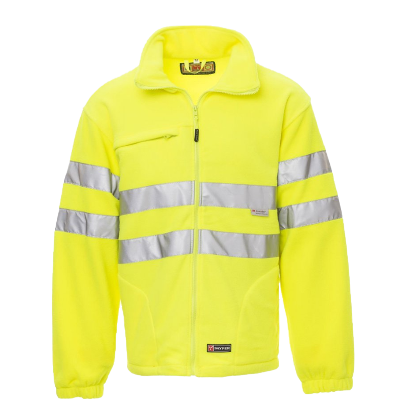 Casaco Polar LIGHT CHEMITOOL de alta visibilidade, com fitas refletoras 3M, fecho de correr metálico, cordão ajustável na cintura, punhos elásticos, dois bolsos com fecho de correr oculto, um bolso com fecho de correr dianteiro, costuras reforçadas.