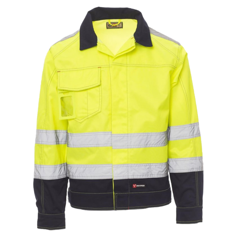 Blusão SAFE HI-VI CHEMITOOL multi-estação, de alta visibilidade com fitas refletoras, fecho frontal com botões de plástico e aba, punhos com botão, cintura ajustável com velcro. Pespontos em contraste, bolso para telemóvel, porta identificação destacável e suporte de caneta no bolso do peito com aba e velcro, corte cintado.