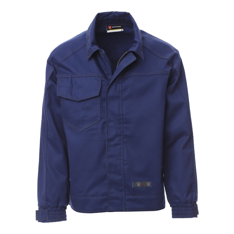 Blusão SAFETY 2.0 CHEMITOOL em algodão tipo ganga antiestático, antiácido, ignífugo, resistente ao arco elétrico adequado para soldadores, costuras duplas reforçadas em contraste nas mangas e laterais. Um bolso no peito do lado direito com porta-caneta com aba e fecho de velcro. Costas ajustáveis com velcro para melhor cobertura, mangas justas com punhos elásticos e fechos com velcro para melhor ajuste. Fecho de correr frontal com aba e velcro. Porta-crachás de plástico destacável.