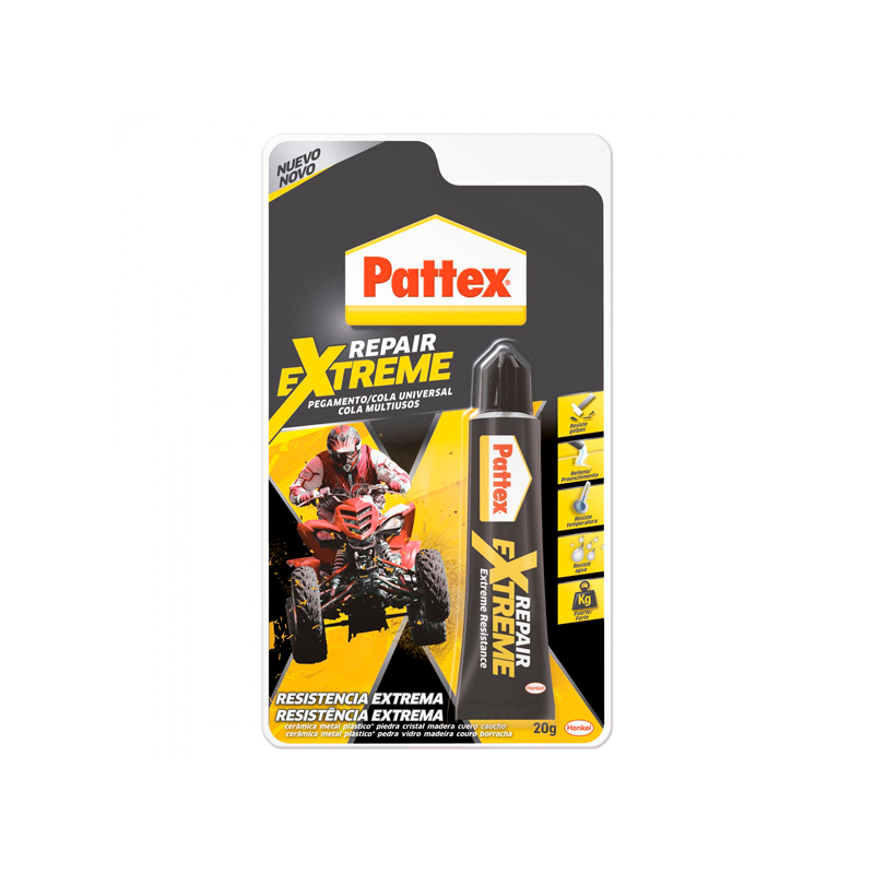 - Cola universal multiusos e multimateriais extra forte (resiste até 60kg/cm2); - Flexível: a união resiste a golpes, torções e vibrações; - Possui elevado poder de enchimento e vedação: fórmula gel; - Cola praticamente todos os materiais: madeiras e laminados, plásticos (ABS, PVC, metacrilato, policarbonato, esferovite, poliéster, nylon), borracha, metais, vidro, couro, cartão e feltro; - Resistente a variações de temperatura (-50ºC-120oC), à água, intempéries e raios UV; - Endurece em 15min e é retificável durante os primeiros minutos. Máxima resistência após 24 horas; - Não cola os dedos; - Embalagem: tubo de 20g.