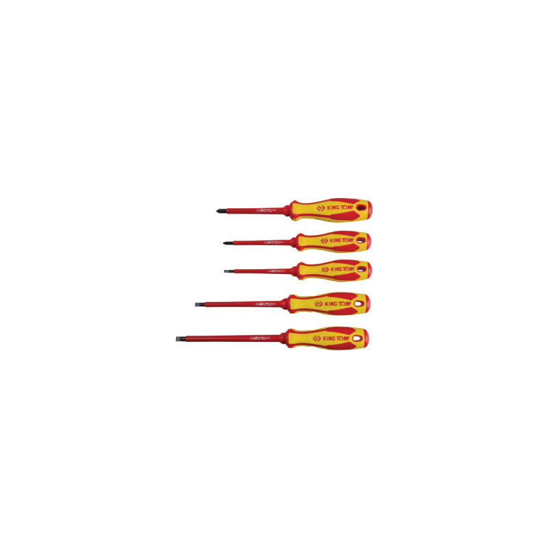 Jogo de Chaves de Fenda PHILLIPS®/TORX® de Electricista - 7 (un.) KING TONY-Haste com acabamento emborrachado isolante.