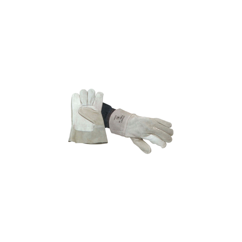 Palma e indicador em pele,Dorso em crute,Costuras duplas,Manguito em crute de 7 cm,Proteção arterial;Recomendada para:Soldadura pouco agressiva; Indústria metalúrgica.