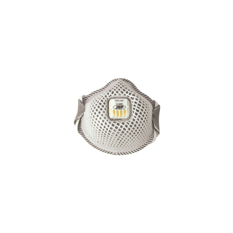 - Filtro à prova de poeira. - Formato de concha com válvula. - Com clip nasal. - Arnês elástico de cabeça. - Válvula que reduz incómodos, permitindo que o ar exalado seja expelido evitando a acumulação de calor no seu interior. - Superfície interna almofadada, muito suave e maleável. - Valor de proteção atribuído (VPA) 20 x TLV. - EN 149: 2001 + A1: 2009.