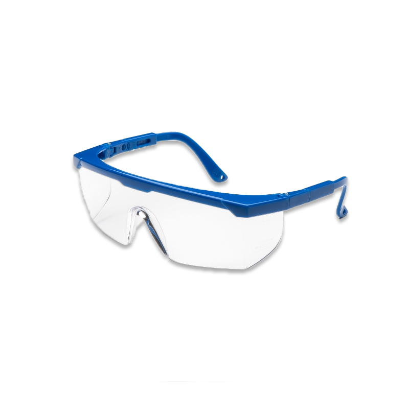- Óculos fabricados em policloreto de vinil (PVC) transparente. - A lente panorâmica é de policarbonato de 1,5 mm de espessura. - Resistência a impactos.